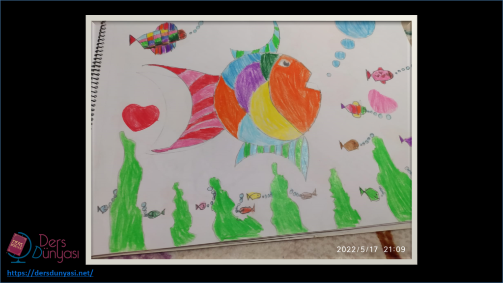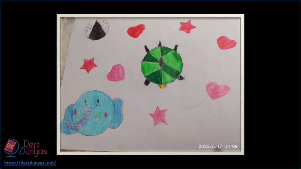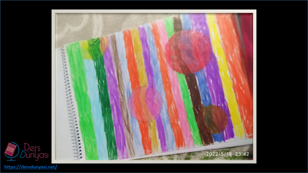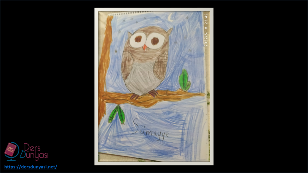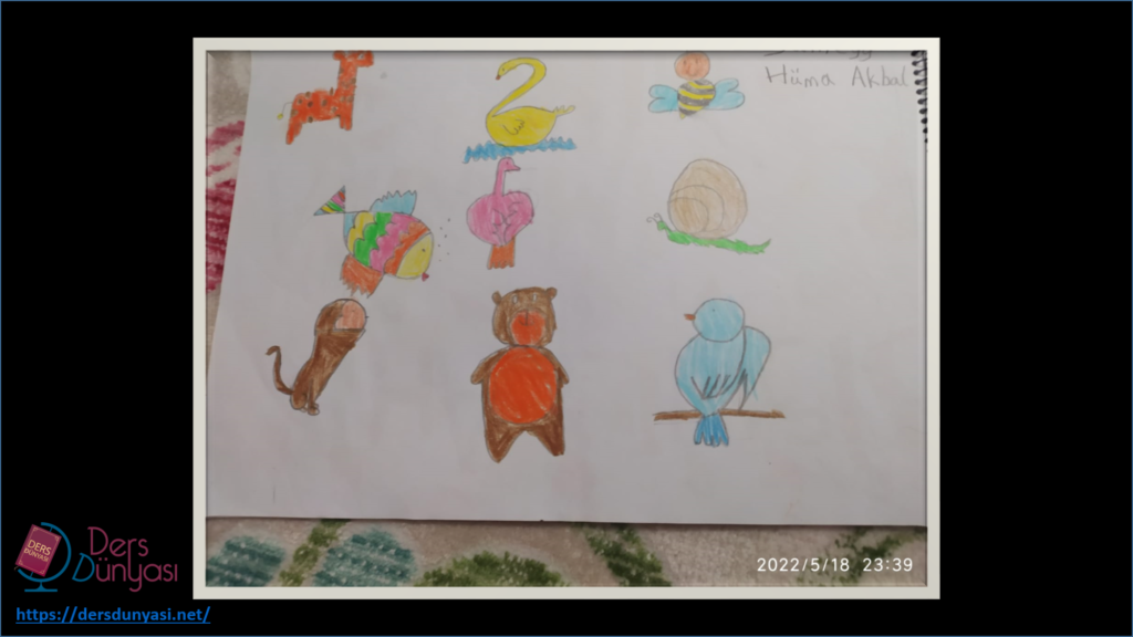 Resimlerin fotoğraflarını öğrenci kendisi çektiği için (3. sınıf öğrencisi) resimlerin arka planında halı gibi farklı görüntüler bulunmaktadır.