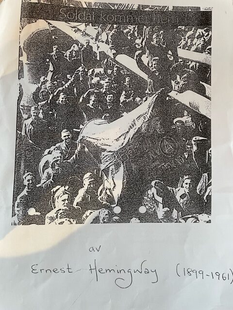 Det fanns några sidor om “Soldat kommer hem av Ernest Hemingway” som vi skulle läsa och göra på uppgifter (Se nedan).