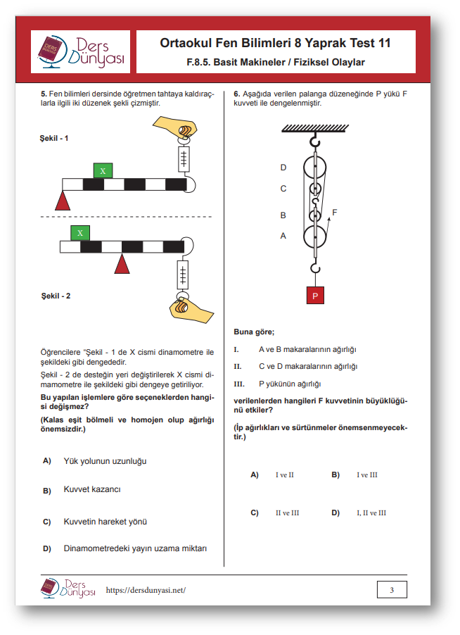 5. Ünite basit makineler testti bulunmaktadır.