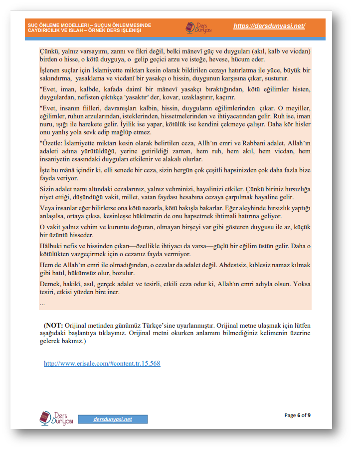 an’ane-i müstemirre: yerleşmiş, devam eden gelenek âşiren: onuncusu bâhusus: özellikle bizzat: doğrudan cihet: yön, taraf dalâlet: doğru yoldan ayrılma, sapkınlık delâil: deliller deruhte etmek: üstlenmek ef’âl: fiiller, işler farz: Allah’ın kesinlikle yapılmasını emrettiği şey ferâiz: farzlar; Allah’ın yapılmasını kesin olarak emrettiği şeyler fıtrat: yaratılış, mizaç gaflet: duyarsızlık, umursamazlık; Allah’ın emir ve yasaklarına duyarsız davranma hâli güruh-u mücâhid: din için cihad edip çalışan, çaba harcayan kimseler topluluğu hâcât-ı diniye: dinle ilgili ihtiyaçlar hadsiz: sayısız, sınırsız hakikî: asıl, gerçek hamiyet: din ve vatan gibi mukaddes değerleri ve kendi aile ve yakınlarını koruma duygusu ve gayreti hasiyet: özellik hukuk-u ibâd: kul hakları; diyet, tanzimat, borç hakkı gibi özel menfaati ilgilendiren haklar (mülkiyet, sağlık, alışveriş, borç gibi)