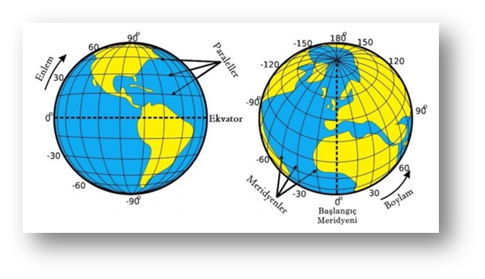 coğrafi konumlar, dünyanın şekli ve güneş sistemindeki konumu,
