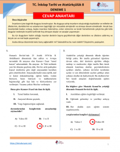 KAPAK CEVAP ANAHTARI T. C. İnkılap Tarihi ve Atatürkçülük 8 Deneme 1