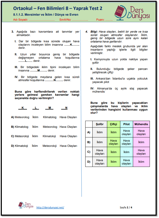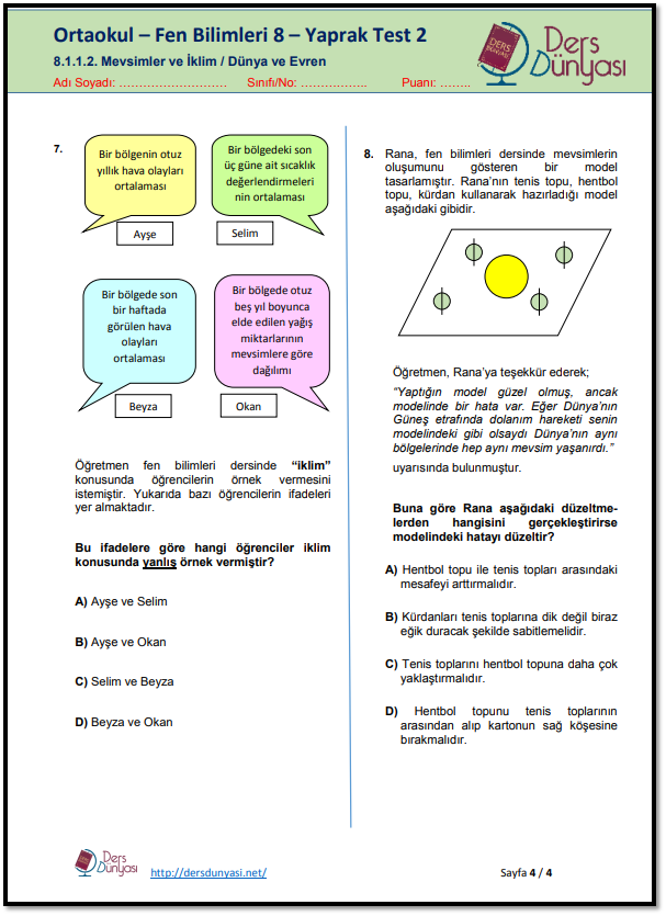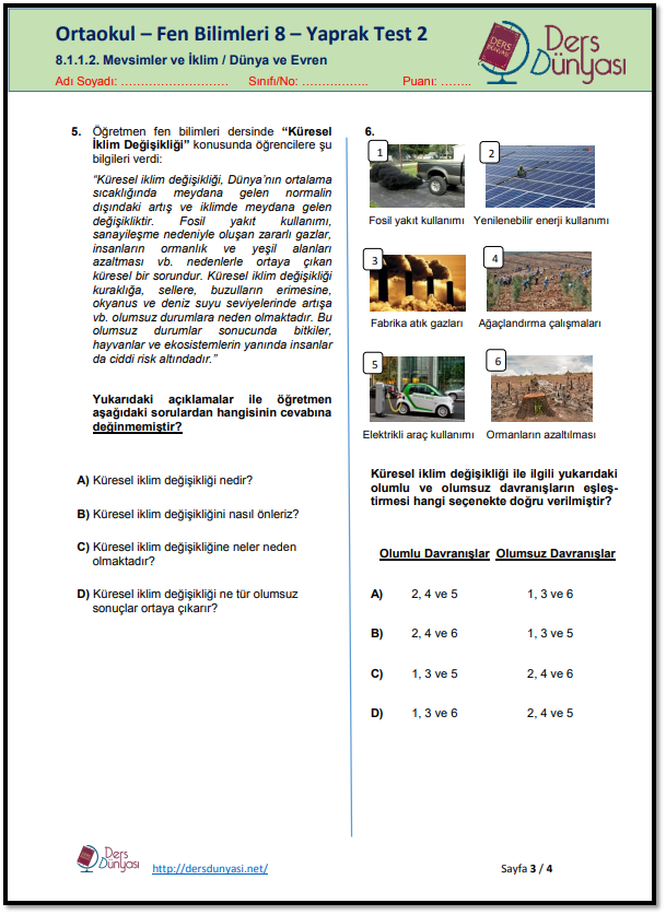 LGS’de çıkan Fen Bilimleri sorularının çözümüne yardımcı olmak üzere bu yaprak testler hazırlanmış ve ücretsiz bir şekilde, öğrencilerin, bu sınava çalıştıran öğretmenlerin özellikle Fen Bilgisi Öğretmenlerinin, velilerin ve idarecilerin kullanımına açılmıştır.